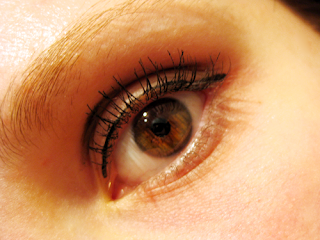 - Appliquer du traceur liquide noir sur la paupière suppérieure. Continuer la ligne.